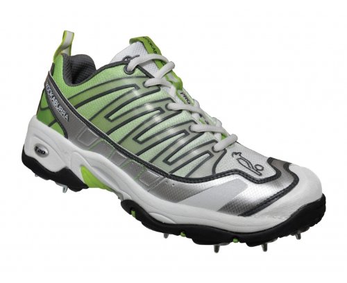 KOOKABURRA Pro Flex 360 Chaussures de Cricket pour Adulte, Blanc/Noir/Argent/Vert, 40.5