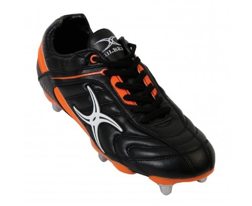 GILBERT Sidestep Barbarian 6 Stud Chaussures de Rugby pour Enfant, Noir/Orange, 38